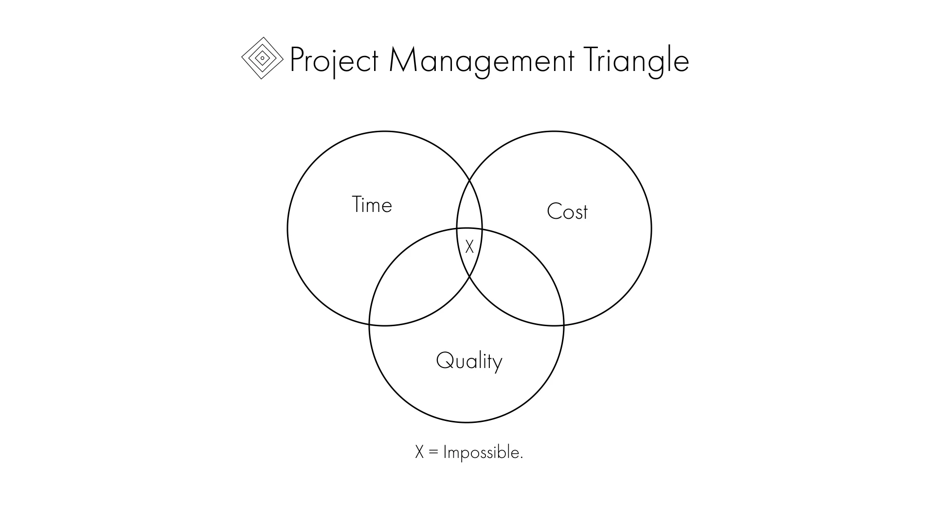 A mental model that is incredibly popular in agencies and consulting firms is the Project Management Triangle, the so called ‘Iron Triangle’ of production.